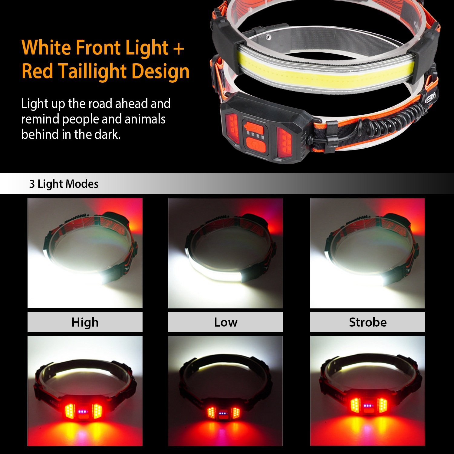 *3 Lighting Modes*:3 Light modes controlled by a single switch are here for you,strong,weak,and strobe,fully satisfying your needs in different situations.