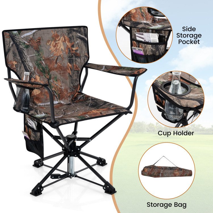 360° Swivel Hunting Chair Portable Foldable Hunting Chair with Mesh Cup Holder and Storage Pockets - Camouflage