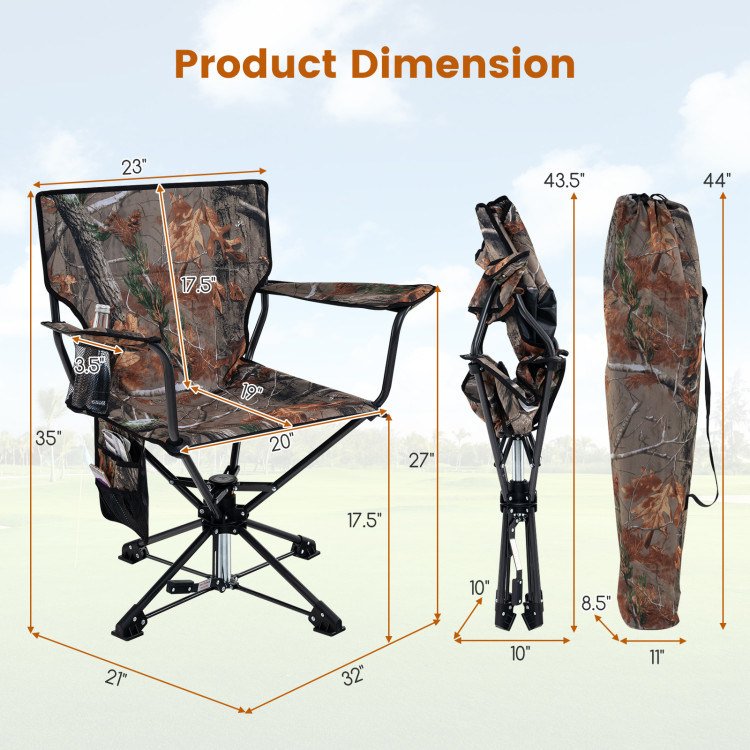 Home > 360° Swivel Hunting Chair Portable Foldable Hunting Chair with Mesh Cup Holder and Storage Pockets - Camouflage