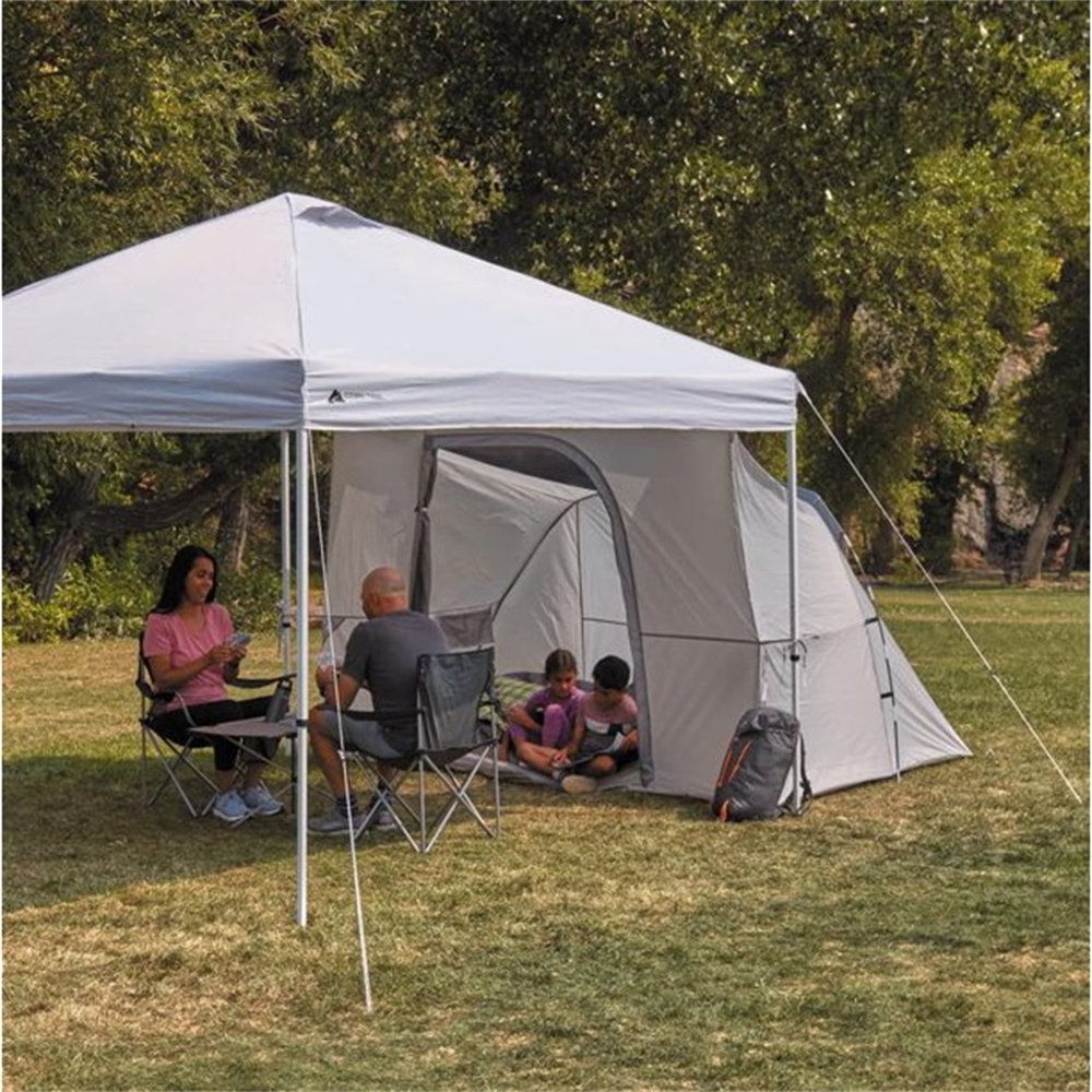The 4-Person Connect Tent Universal Canopy Tent has been enhanced to now work with both Straight-Leg and Slant-Leg 10 ft. x 10 ft. Canopies. You can connect two of these tents to a Slant-Leg Canopy to enjoy private sleeping areas while sharing the common area under the canopy (each tent and canopy sold separately). If using a Straight-Leg Canopy; you can connect up to 3 of these tents; making it great for festivals or scouting adventures.