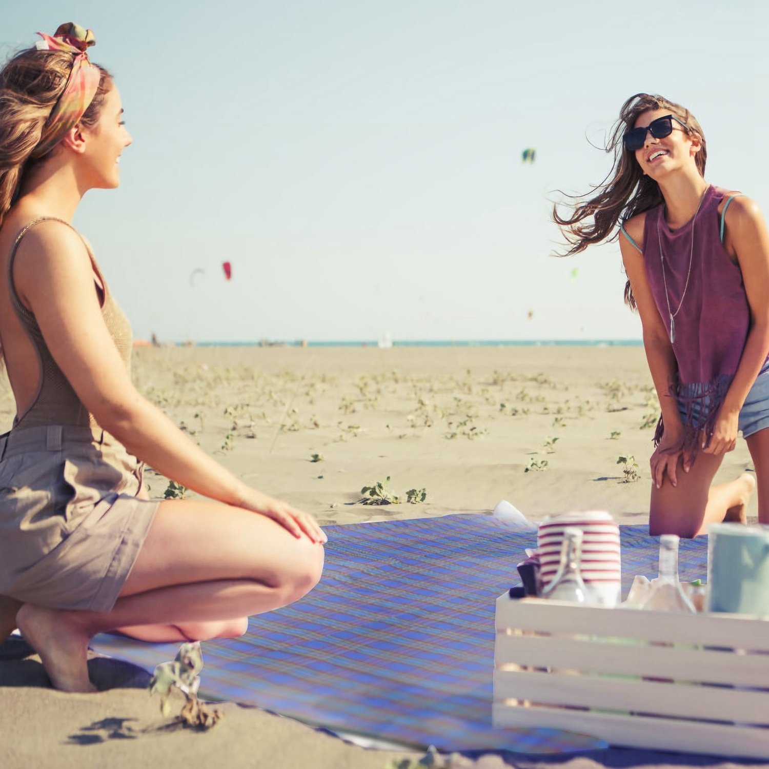 ** FOLDABLE & PORTABLE*:Folds out to 60" x 78" and folds to a compact 10.5" x 15". Built in a durable and convenient handle,weight only 1.2 pounds,portable and easily thrown in a backpack or travel bag. Perfect for picnic,camping,outing and beach travelling.