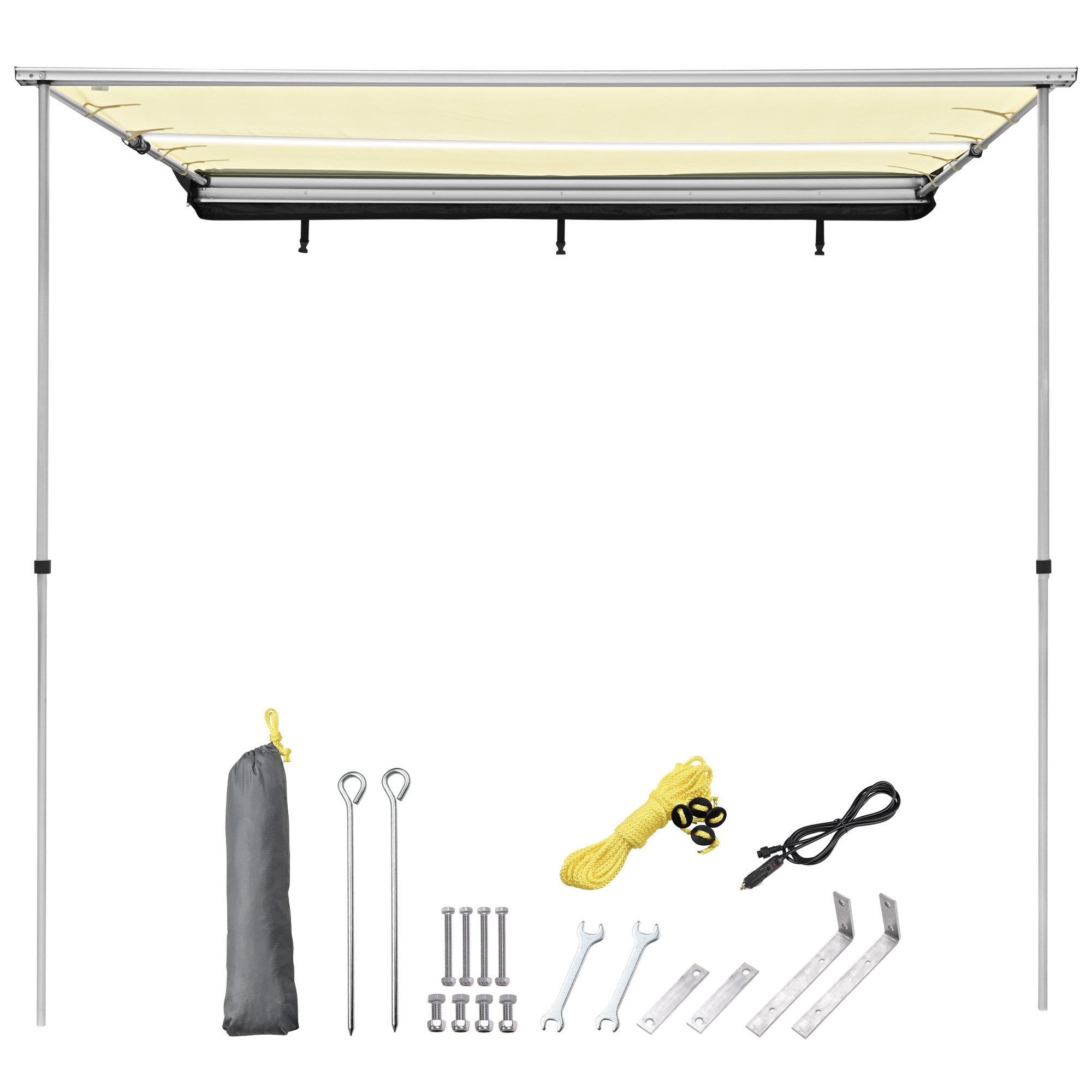 - Compatibility - 98 7/16" x 91 9/16" x 86 3/8" Car Side Awning with LED light is installed on the vehicle with rooftop rails; compatible with rail width less than 3 3/8"; distance between rail and roof more than 13/16" and the space of mounting 2 brackets should be more than 49 3/16"; provide 62 sq.ft large shading area for outdoor activities