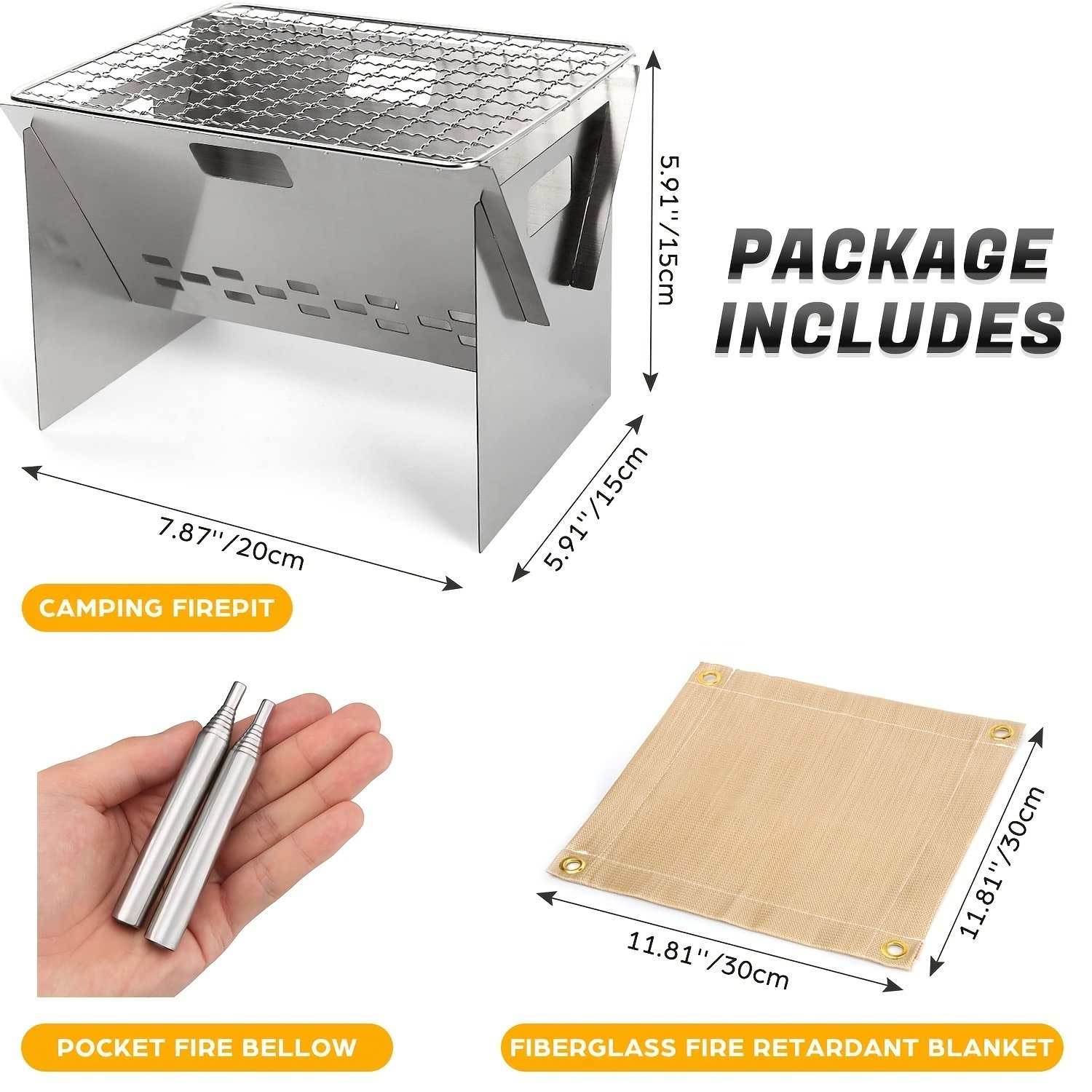 Card Stove Mini Barbecue Grill Fire Table Outdoor Firewood Stove Camping Barbecue Stove BBQ Stainless Steel Firewood Rack - Mini Card Stove