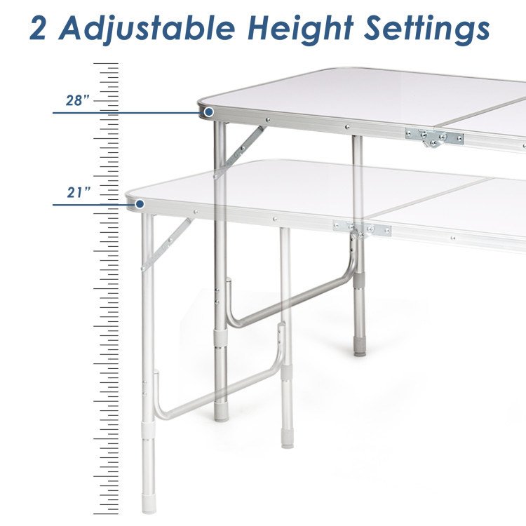 2.Strong Structure and High Load-bearing: Density board and aluminum material ensure the high quality of this folding table. And the anti-deformation wrap also extends the service life of the table. The triangular structure and reinforcement measure improve the stability of the table and enable it to withstand the weight of 45 lbs.