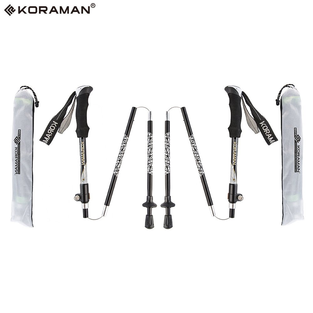 Home > KORAMAN 1pair Carbon Fiber Collapsible Hiking Trekking Walking Pole Sticks; Lightweight Folding Quick-Lock System With Carrying Bags - Black