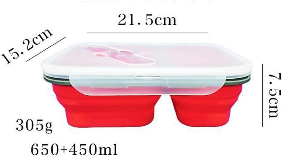 Lunch Box Bento Box Collapsible Silicone Lunchbox with Two Compartments BPA Free Heat Resistant Great for School Work Camping Hiking Food Storage - re
