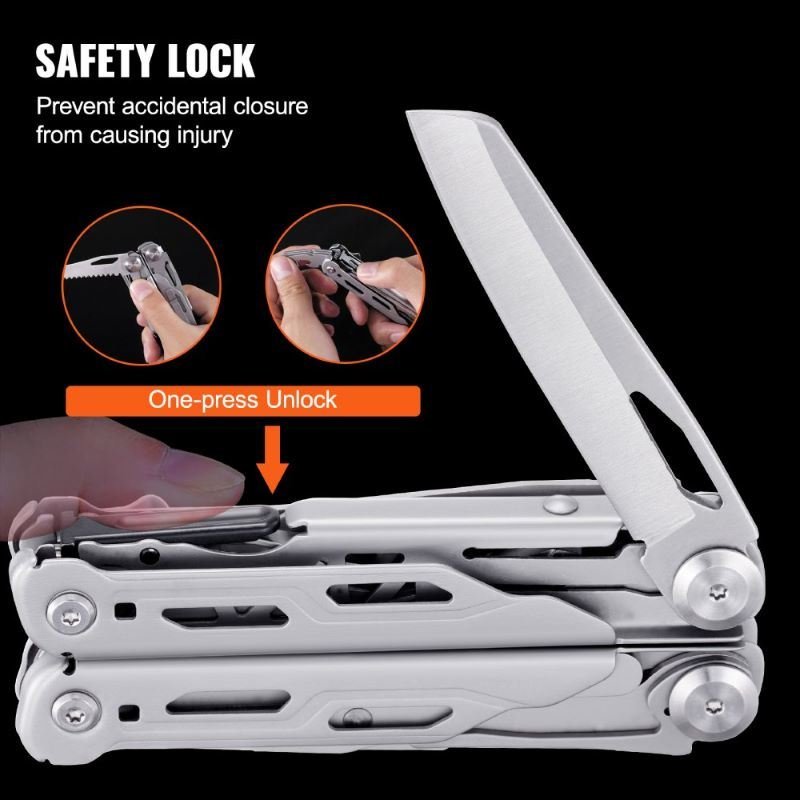 1.This multi tool is constructed with 440A stainless steel, providing a high Rockwell hardness rating of 54 and excellent rust resistance.