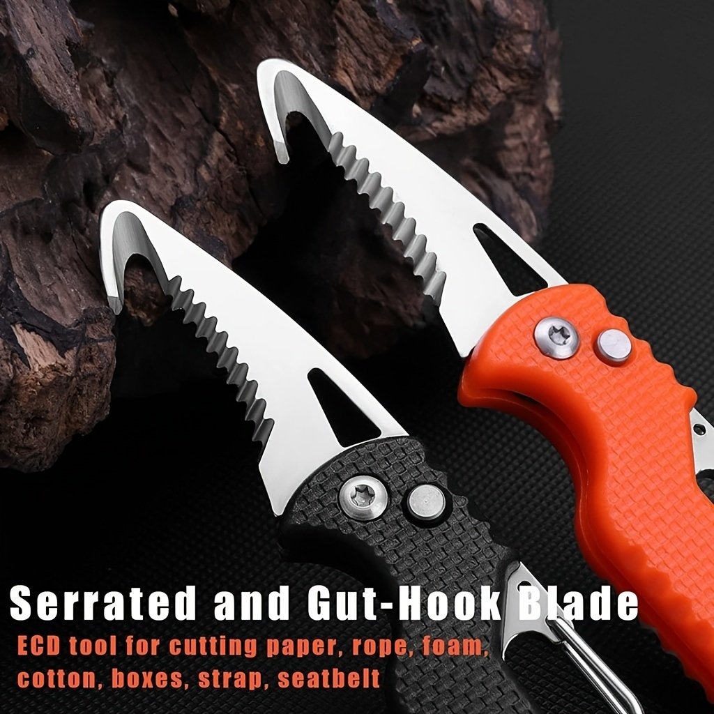 Multitool Keychain Knife; Small Pocket Box/Strap Cutter; Razor Sharp Serrated Blade And Paratrooper Hook; EDC Folding Knives - Orange+Black