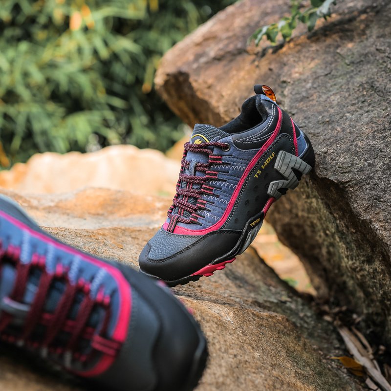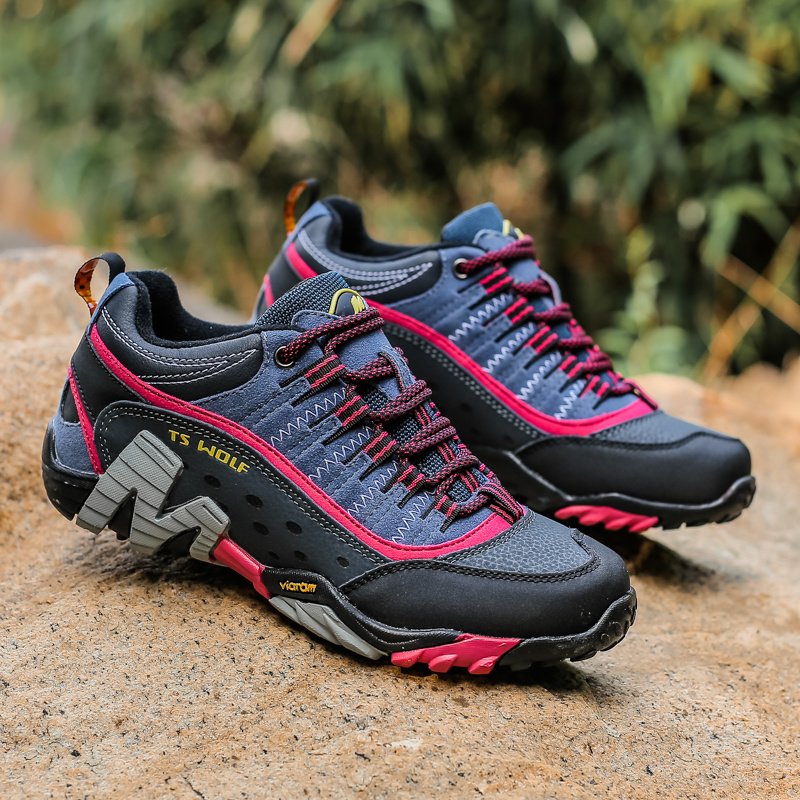 Home > Outdoor Lover Trekking Shoes Men Waterproof Hiking Shoes Mountain Boots Genuine Leather Woodland Hunting Tactical Shoes - Dark blue rose red - 36