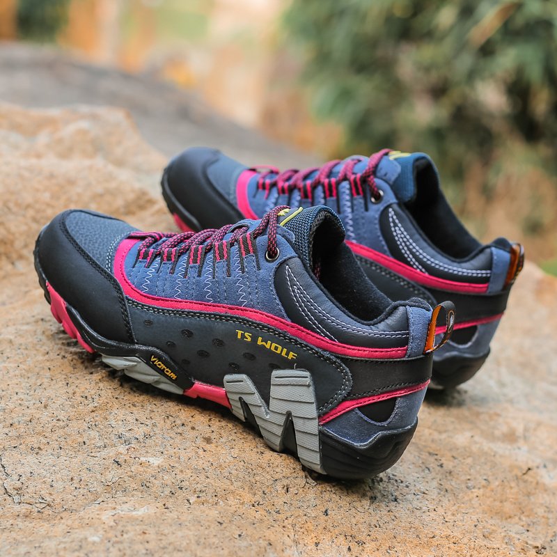 Home > Outdoor Lover Trekking Shoes Men Waterproof Hiking Shoes Mountain Boots Genuine Leather Woodland Hunting Tactical Shoes - Dark blue rose red - 37
