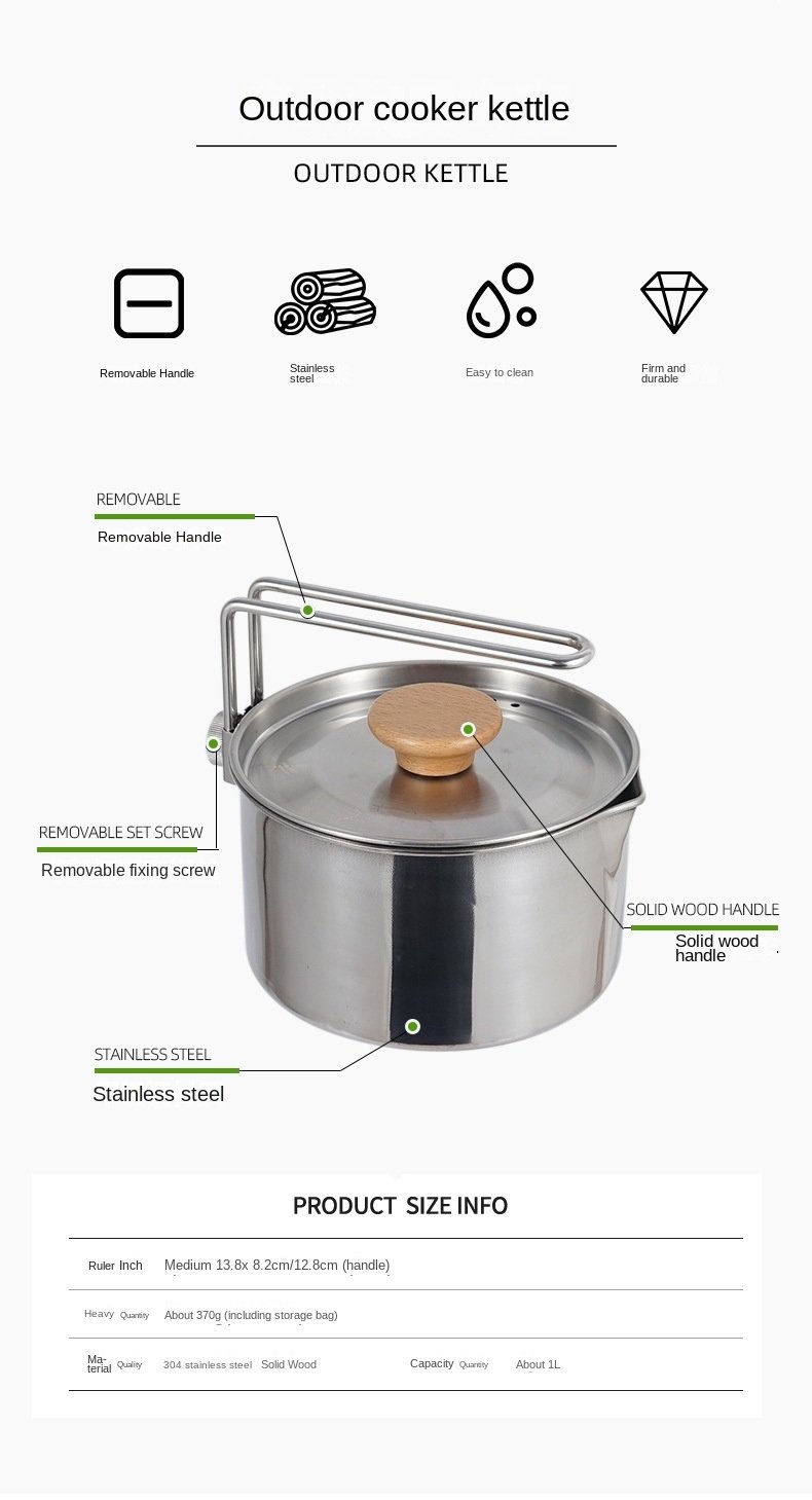 Product name :Outdoor stainless steel kettle pot