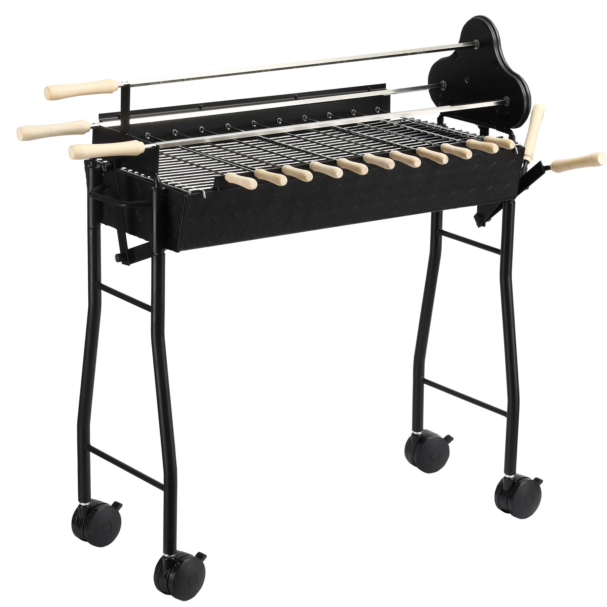 Home > Portable Charcoal BBQ Grills Steel Rotisserie Outdoor Cooking Height Adjustable with 4 Wheels Large / Small Skewers Portability for Patio, Backyard, B
