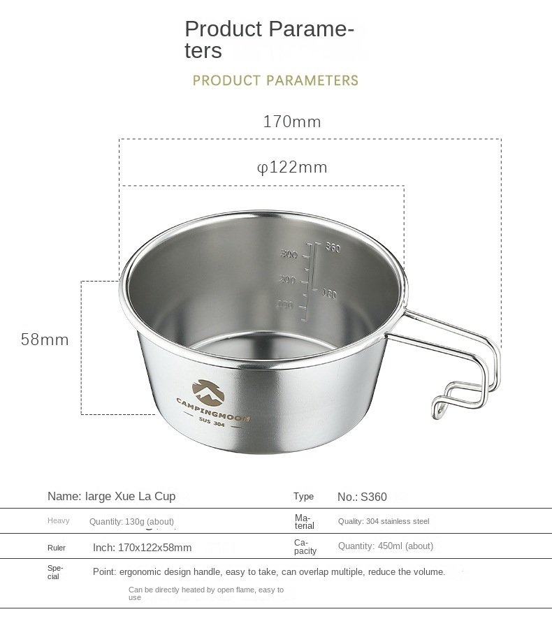 Home > S362 picnic portable snow pull bowl steamer lattice steam drawer outdoor camping picnic stainless steel small dumpling steamer - S360-450ml large she