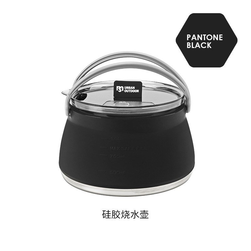 Silicone folding kettle portable wild camping outdoor open fire coffee tea cassette cooker cookware - Silicone cookware-black