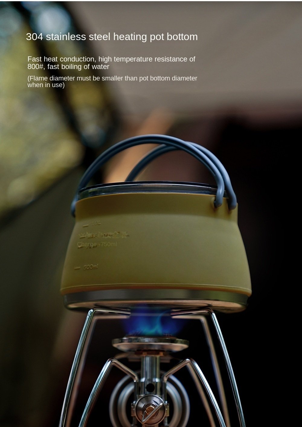 Home > Silicone folding kettle portable wild camping outdoor open fire coffee tea cassette cooker cookware - Silicone cookware-black